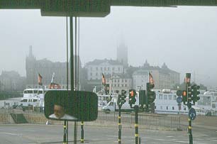霧の中にリッダーホルム教会の尖塔がかすんでいます。