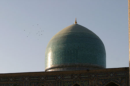 サマルカンド・ブルーのタイルに彩られたティラカリ・メドレセのドーム。